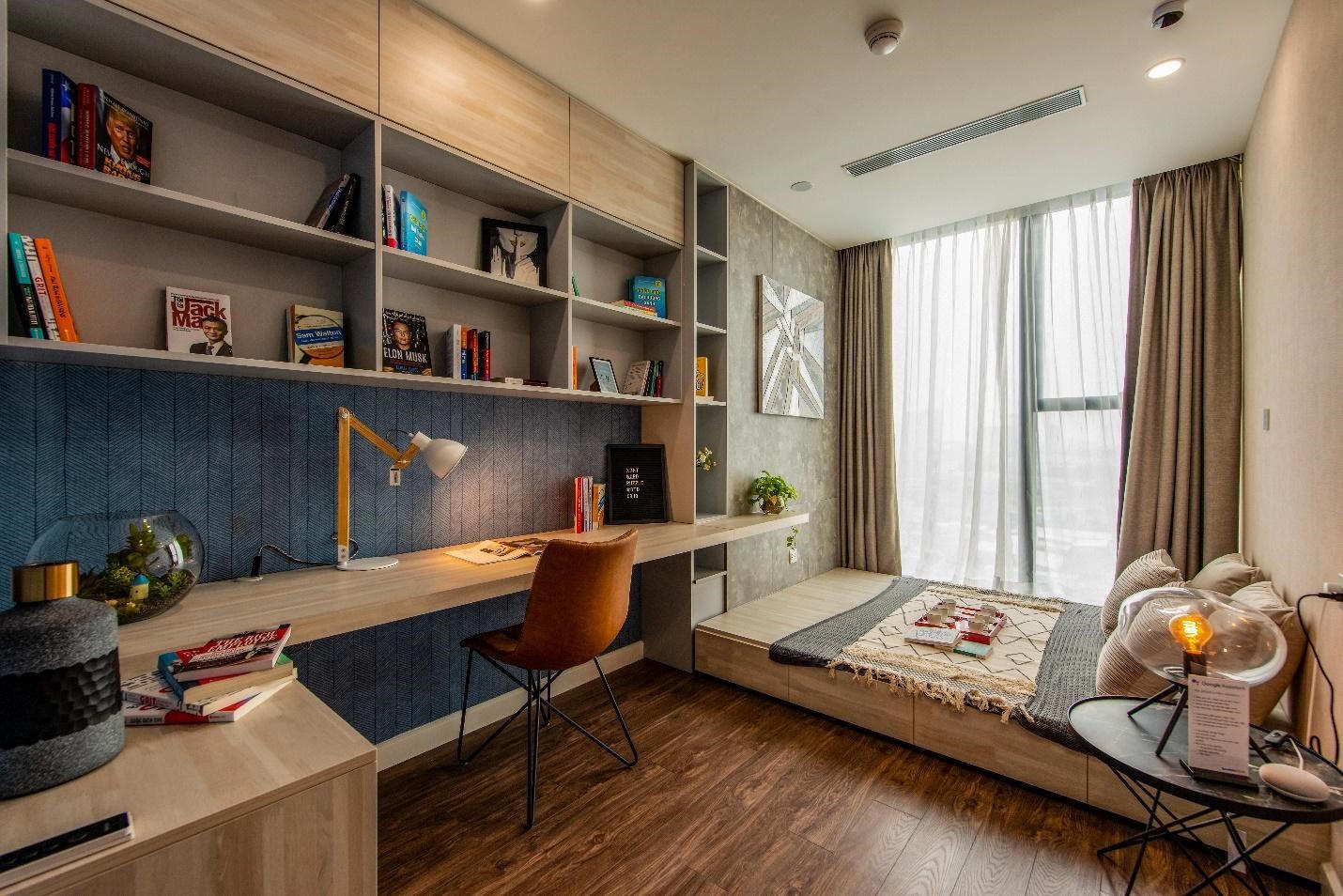Dự án Sunshine City Sài Gòn có nhiều loại hình căn hộ với diện tích khác nhau từ 2-4 phòng ngủ để cư dân thỏa sức lựa chọn. Tất cả các phòng trong căn hộ đều có ánh sáng tự nhiên chan hòa, vừa thân thiện với môi trường, vừa tạo nguồn năng lượng sống tích cực, khoan khoái cho chủ nhân. Căn phòng ngủ này còn khéo léo kết hợp không gian làm việc khoa học và đầy cá tính