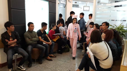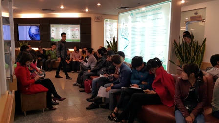 “Cảnh tượng đầu tiên khi bước chân vào phòng khám đa khoa bệnh viện Hồng Ngọc – Kang Nam là một "rừng" người đứng, ngồi, nằm ngổn ngang chờ khám bệnh. Tình trạng bệnh viện bị quá tải đến mức chỗ ngồi chờ khám không có, tôi phải bế con đang khóc ngặt ngẽo để chờ đến lượt khám. Khi xếp giấy tại phòng khám, trẻ em cũng không được ưu tiên khám trước với các trường hợp đi khám sức khỏe lao động.” chị Thúy cho biết.