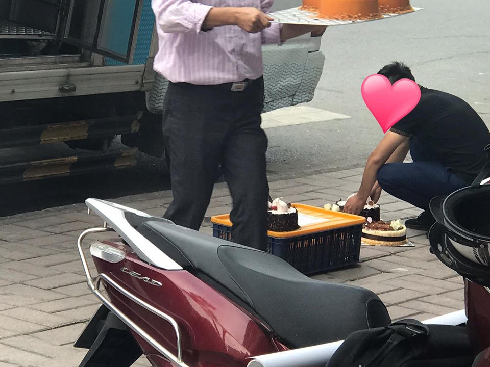 Khách hàng phát hoảng khi nhân viên Paris Gateaux đặt bánh xuống vỉa hè
