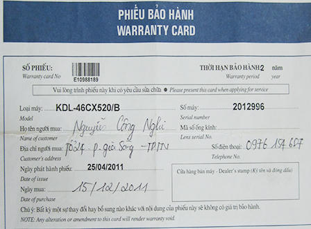 Bởi theo quy định trên phiếu bảo hành, sau 6 tháng xuất hàng và phiếu bảo hành kèm theo mà chưa bán được sản phẩm, thì đại lý bán hàng cũng như hãng phải có trách nhiệm kiểm tra và thu hồi lại phiếu đã hết hạn, cũng như hàng tồn kho để xuất hàng mới bán cho khách. Thế nhưng, các đại lý và hãng Sony đã không chú ý khi bán sản phẩm cho khách mà hàng, nhất là loại hàng tồn kho, chất lượng không đảm bảo. Hơn thế nữa, khi bán sản phẩm ti vi Sony này, đại lý bán hàng lại không xuất hóa đơn đỏ mà chỉ xuất hóa đơn bình thường, do vậy mà khách hàng không được gia hạn bảo hành theo như hóa đơn mua hàng, mà phải tuân thủ theo đúng ngày ghi trên phiếu bảo hành, nên khi sử dụng được 2 năm máy đã hỏng và đã hết bảo hành như gia đình nhà ông Nghi.