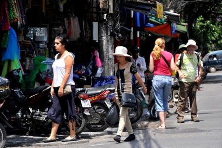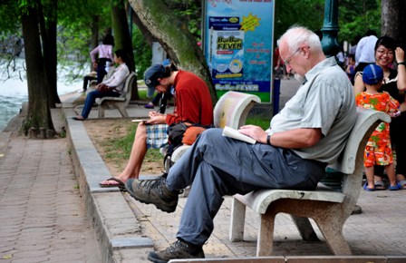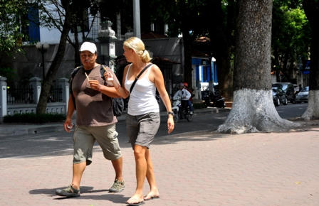 Quanh khu vực phố cổ, hồ Hoàn Kiếm… lượng khách nước ngoài đến thăm quan đông nhất.