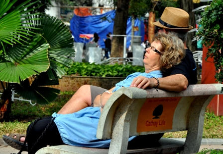 Trên mỗi con phố, giường như cái nắng cũng phần nào khiến các vị khách nước ngoài phải “nhăn nhó”.