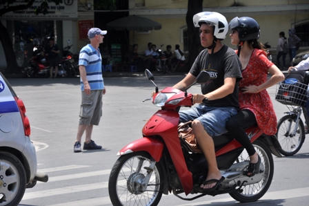 Trang phục khi tham gia giao thông của khách nước ngoài cũng không cần cầu kỳ.