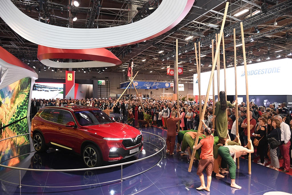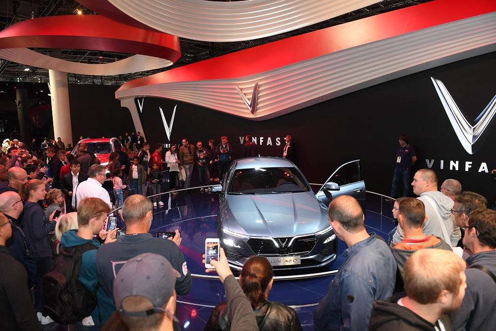 Lần đầu tiên tham dự và cũng là đại diện Việt Nam lần đầu tiên góp mặt tại triển lãm ô tô quy mô quốc tế, VinFast trở thành gian hàng nổi bật bên cạnh các tên tuổi lớn như Ferrari, Suzuki, Kia, Renault...