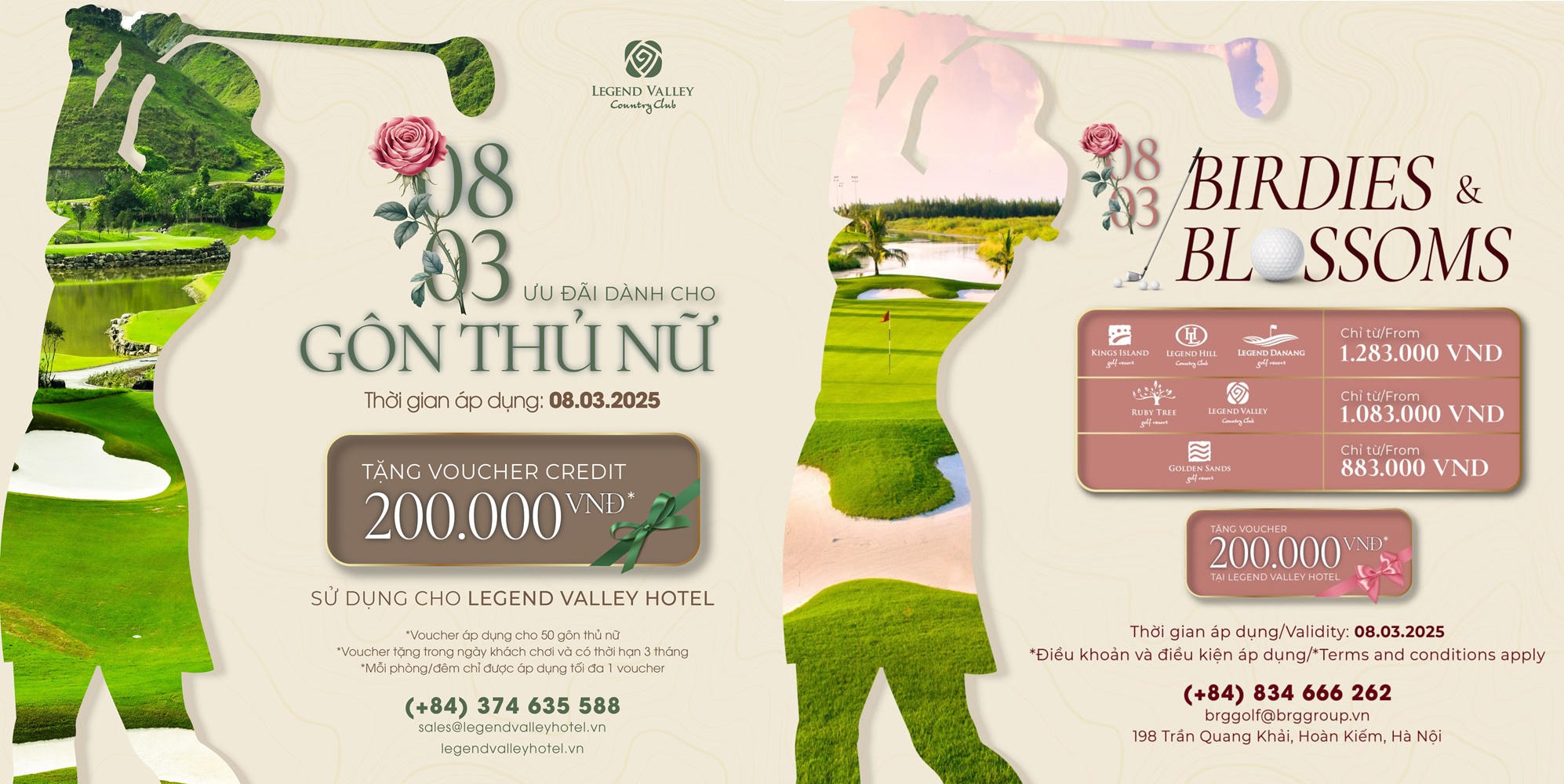 Khu phức hợp thể thao và du lịch Legend Valley Country Club sẽ áp dụng mức giá ưu đãi đặc biệt cho các gôn thủ nữ trong ngày Quốc tế Phụ nữ 8-3, đồng thời tặng cho một nửa thế giới những món quà đặc biệt, xinh xắn và thú vị khi sử dụng dịch vụ lưu trú tại khách sạn Legend Valley, điểm lưu trú hot nhất Hà Nam thời điểm này nằm ngay trong khuôn viên tổ hợp.