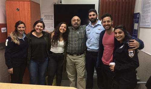 Gia đình du khách Australia chụp ảnh lưu niệm cùng cảnh sát. Ảnh:Israel National News. |