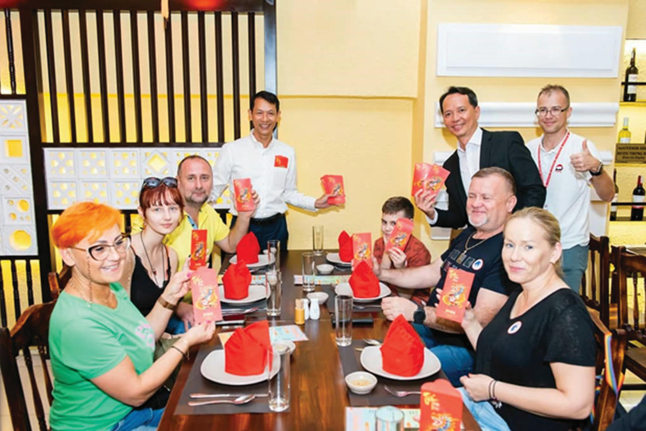 Trong đó, Lữ hành Vietluxtour đã tổ chức tour du lịch đặc biệt “Tây ăn Tết ta”, vào ngày 07/02 (28 Tết) và mang đến cho du khách nhiều trải nghiệm về văn hóa Tết truyền thống của người Việt Nam. Du khách được thưởng thức các món ăn ngày Tết như bánh tét, bánh chưng, thịt kho, dưa kiệu và nhận lì xì theo phong tục tập quán ngày Tết của người Việt.