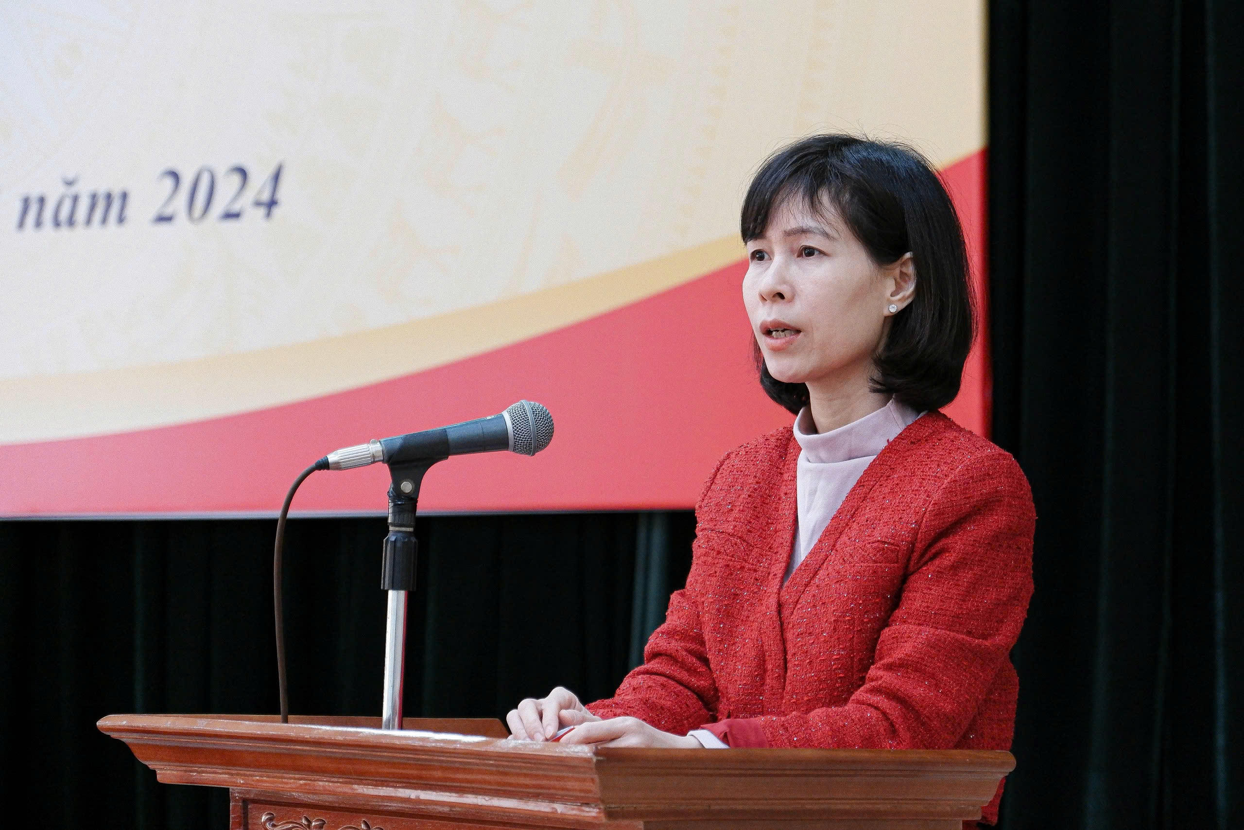 Phó Vụ trưởng Vụ Tổ chức cán bộ, Bộ Tư pháp Trần Thu Hường phát biểu tại lễ khai |