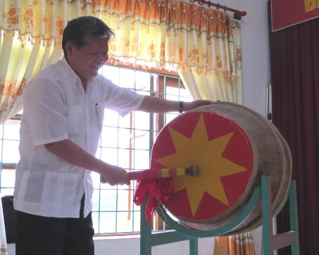 Kết thúc buổi lễ, Bộ trưởng Hà Hùng Cường đã đánh hồi trống khai giảng lớp Trung cấp Luật chính quy đầu tiên trên quê hương Đại tướng và chụp ảnh lưu niệm với đại biểu dự lễ khai giảng cùng các học viên.