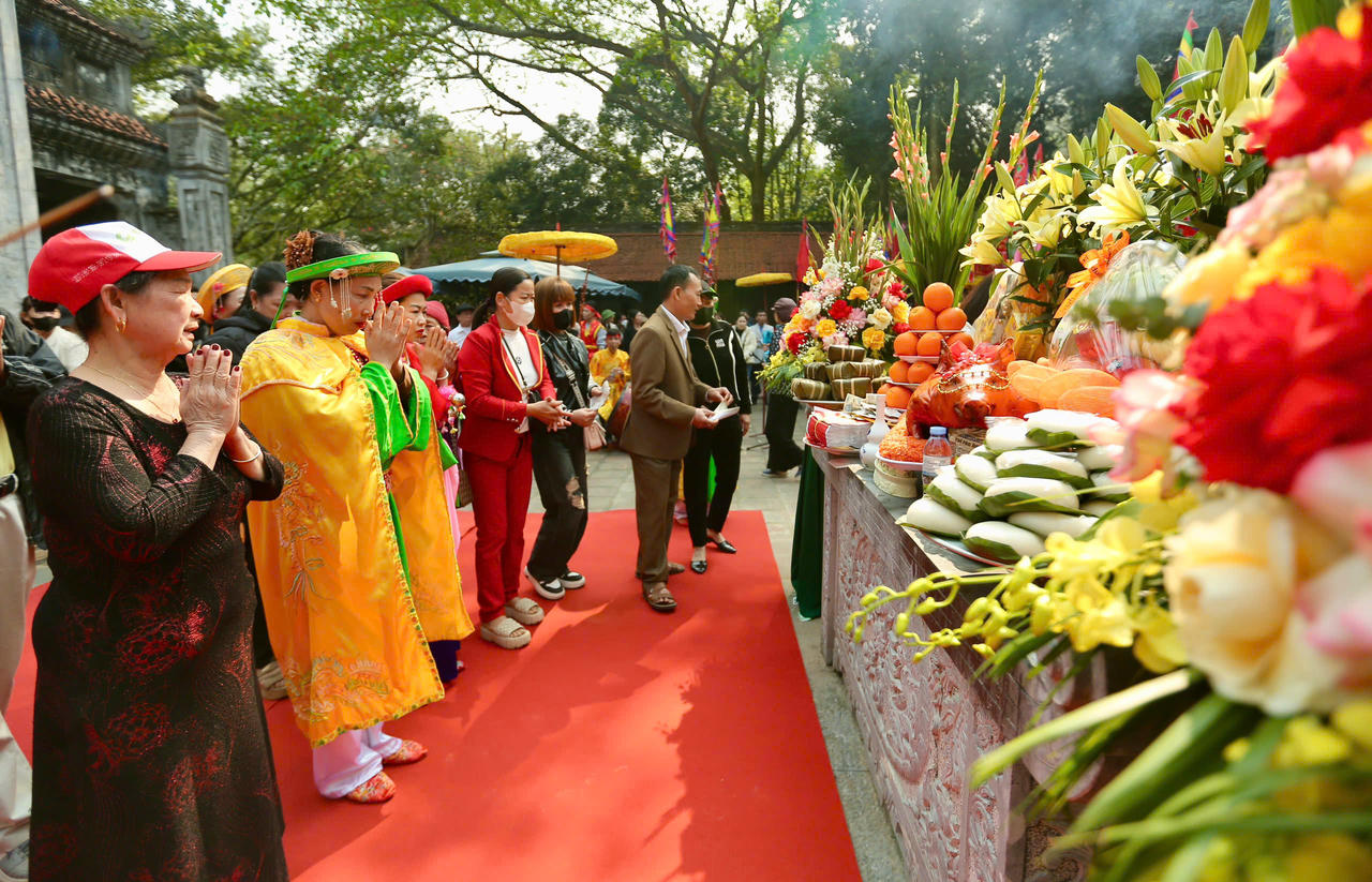 Trong không khí thành kính và tôn nghiêm, Bí thư Tỉnh ủy Nguyễn Doãn Anh và các đồng chí Phó Bí thư Tỉnh ủy cùng các đồng chí lãnh đạo tỉnh đã dâng hương kính cáo trước anh linh Anh hùng dân tộc Triệu Thị Trinh và các bậc tiền nhân trong cuộc khởi nghĩa chống quân Ngô xâm lược.