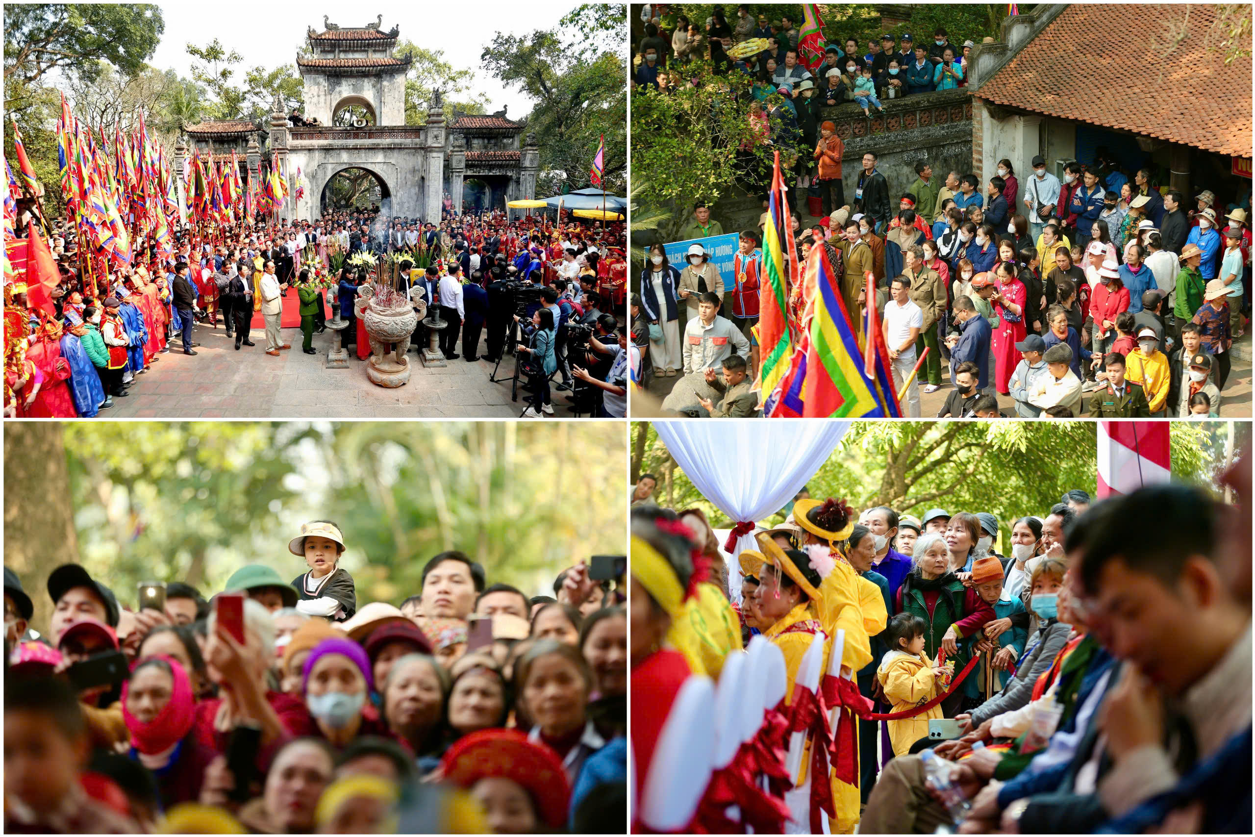 Hàng ngàn người dân địa phương và du khách từ khắp nơi đổ về tham dự Lễ khai hội Đền Bà Triệu năm nay. |