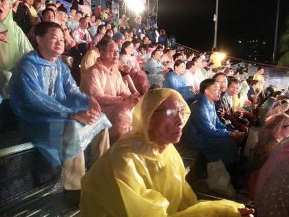 Đáng nói, thời tiết Đà Nẵng lúc này có mưa to. Tuy nhiên, dòng người vẫn ùn ùn đội mưa đổ về Quảng trường Công viên biển Đông để theo dõi Lễ khai mạc.