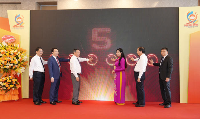Các đại biểu nhấn nút khai mạc các hoạt động chào mừng Đại hội. |