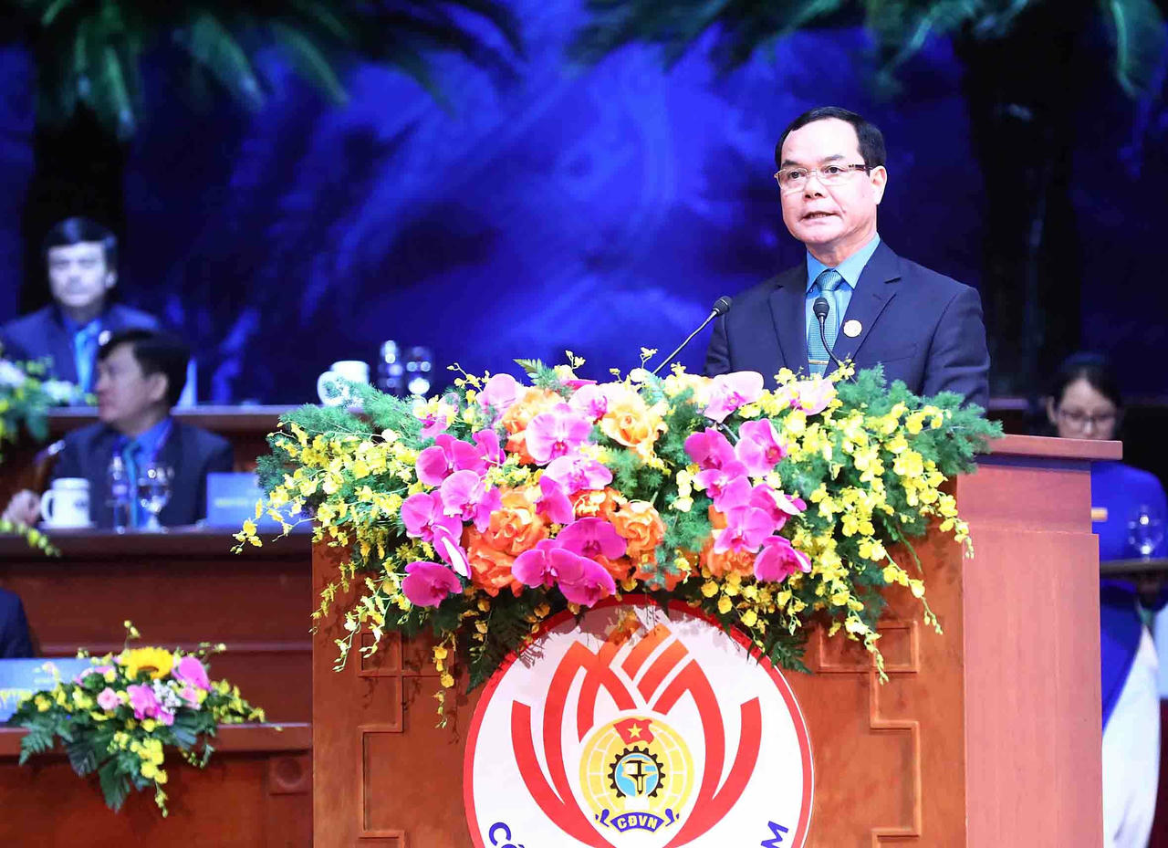 Phát biểu khai mạc Phiên làm việc thứ nhất, Ủy viên Trung ương Đảng, Chủ tịch Tổng Liên đoàn lao động (LĐLĐ) Việt Nam Nguyễn Đình Khang cho biết, nhiệm kỳ 2018 - 2023, Công đoàn Việt Nam thực hiện nhiệm vụ trong bối cảnh tình hình thế giới, trong nước có nhiều khó khăn so với dự báo. Trong bối cảnh đó, với quyết tâm vượt qua khó khăn, phát huy truyền thống, tinh thần năng động, sáng tạo, vì đoàn viên, người lao động, các cấp công đoàn tiếp tục đổi mới nội dung, phương thức hoạt động, đề ra nhiều chủ trương, giải pháp, tổ chức thực hiện và hoàn thành cơ bản các mục tiêu, chỉ tiêu, nhiệm vụ Nghị quyết Đại hội XII Công đoàn Việt Nam.