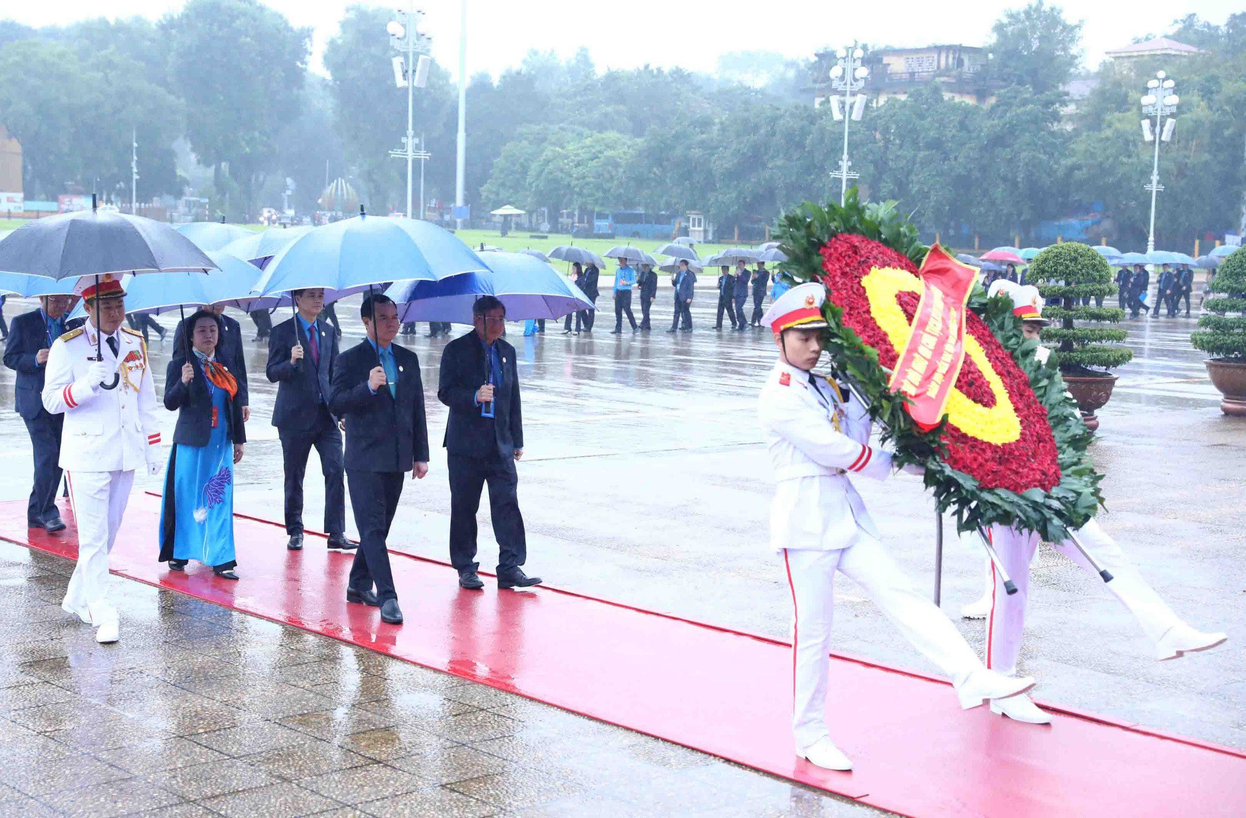 Trước đó, các đại biểu dự Đại hội XIII Công đoàn Việt Nam nhiệm kỳ 2023-2028 đã vào Lăng viếng Chủ tịch Hồ Chí Minh, dâng hương tại Đài tưởng niệm các Anh hùng liệt sĩ, tưởng nhớ những người con ưu tú của dân tộc đã anh dũng hy sinh vì độc lập, tự do của Tổ quốc.