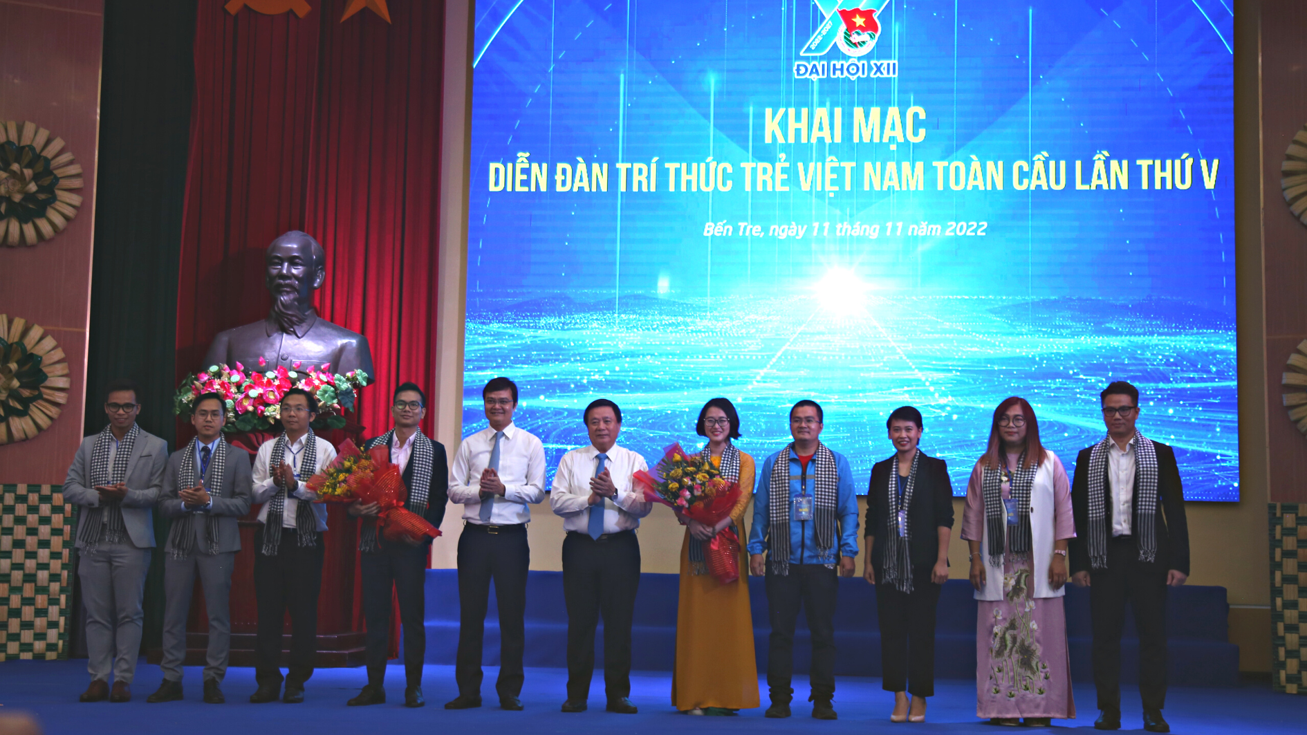 (PLVN) - Sáng 11/11, tại Bến Tre, Diễn đàn Trí thức trẻ Việt Nam toàn cầu lần V năm 2022 đã chính thức khai mạc với chủ đề “Trí thức trẻ thúc đẩy ứng dụng khoa học và công nghệ, đổi mới sáng tạo, góp phần phục hồi phát triển kinh tế đất nước sau đại dịch”. Diễn đàn lần này có sự tham dự của 180 đại biểu chính thức là các trí thức trẻ Việt Nam đã, đang học tập, nghiên cứu, làm việc tại 22 quốc gia, vùng lãnh thổ.