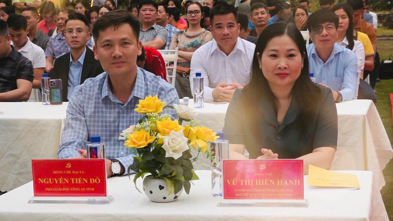 Bà Vũ Thị Hiền Hạnh - Ủy viên BCH Đảng bộ tỉnh, Phó chủ tịch UBND tỉnh, và ông Nguyễn Tiến Đỗ - PGĐ Công an tỉnh tại lễ Khai mạc. |