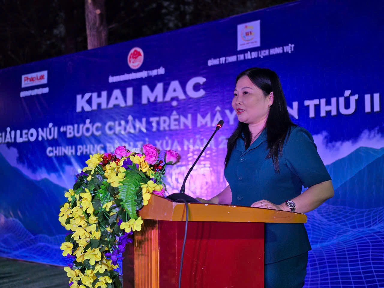 Tới dự lễ Khai mạc Giải leo núi Bước chân trên mây năm 2025 – chinh phục đỉnh Tà Xùa, có các vị khách mời đến từ tỉnh Yên Bái: Bà Vũ Thị Hiền Hạnh - Ủy viên BCH Đảng bộ tỉnh, Phó chủ tịch UBND tỉnh, Trưởng ban tổ chức các ngày lễ lớn và phát triển du lịch tỉnh Yên Bái; Ông Nguyễn Tiến Đỗ - PGĐ Công an tỉnh; Bà Vũ Thị Mai Oanh – PGĐ Sở VH-TT và Du lịch tỉnh Yên Bái.