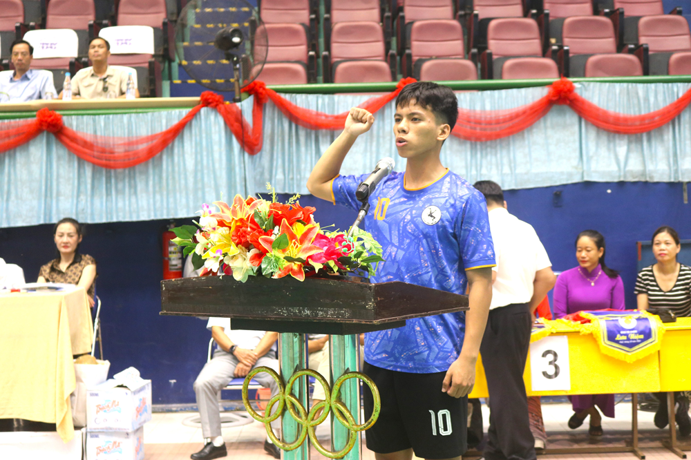 Đại diện các đội dự giải, vận động viên Huỳnh Ngọc Bảo Long (đội Thừa Thiên Huế) tuyên thệ |