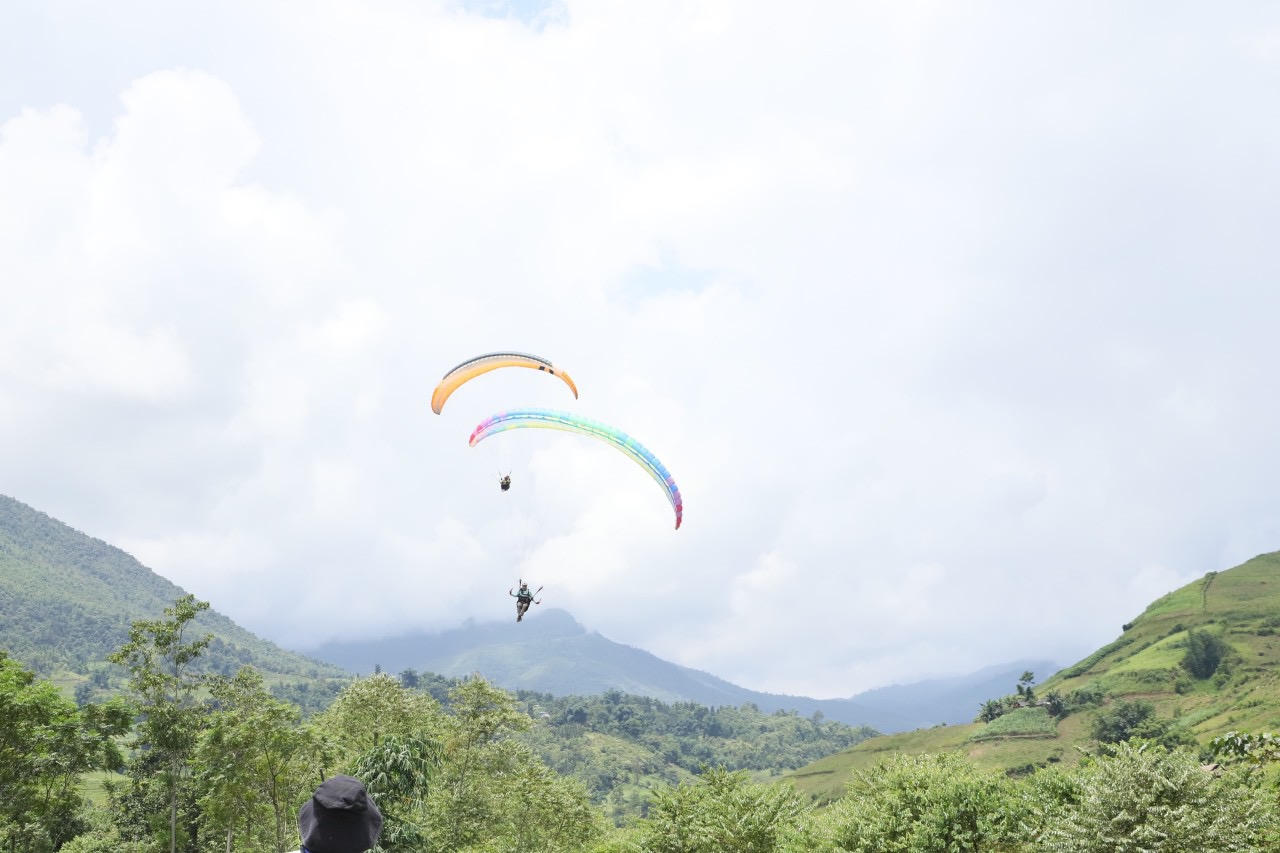 Đây là lần thứ 2 huyện Bát Xát tổ chức các hoạt động trải nghiệm hấp dẫn này trải nghiệm bay dù lượn có điểm xuất phát ở đồi Trứng, thôn Tả Phìn, xã Dền Thàng. Điểm đáp là thôn Làng Mới, xã Sàng Ma Sáo.