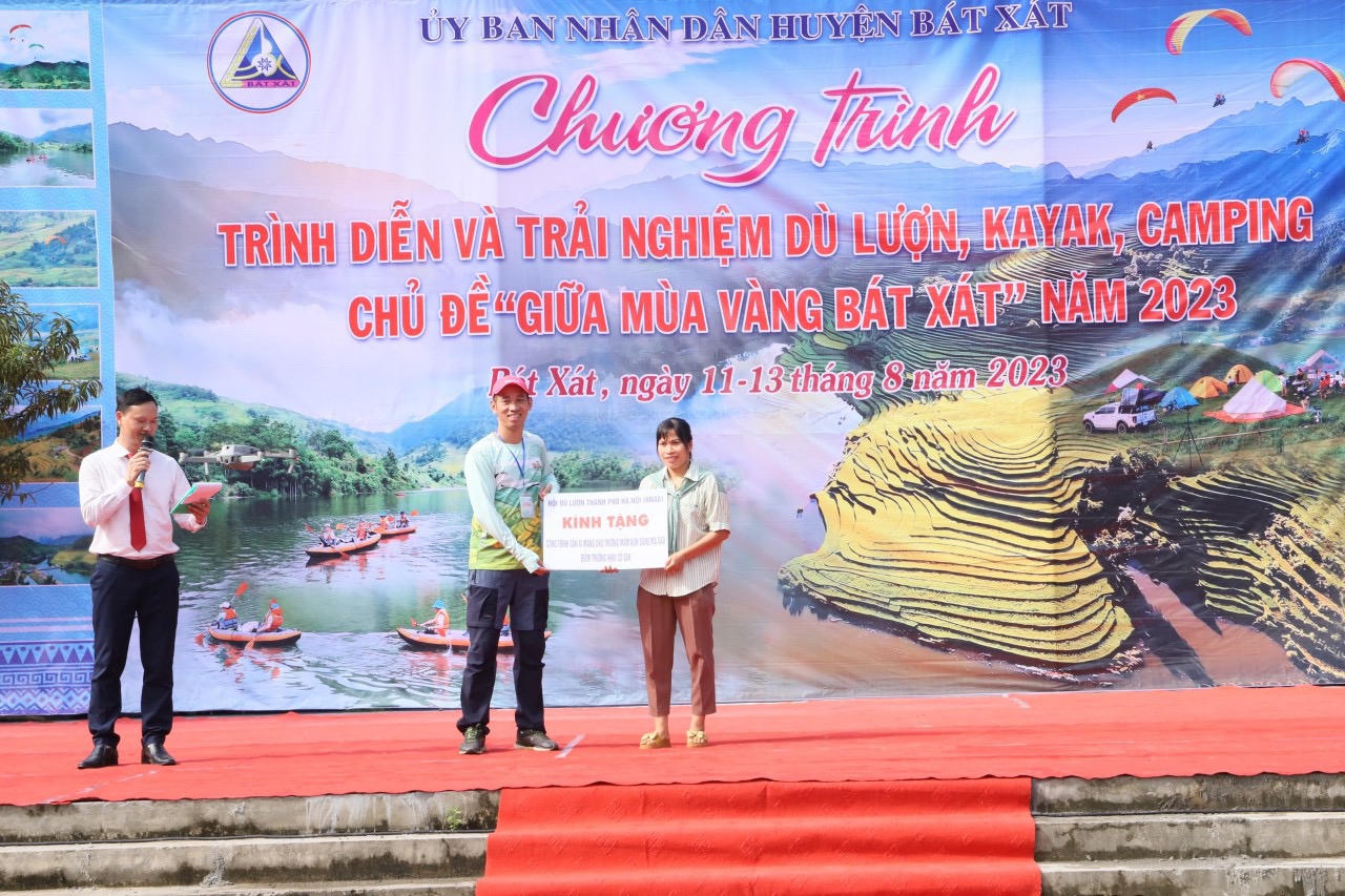 Nhân dịp này, Câu lạc bộ Dù lượn Hà Nội đã trao tặng công trình thiện nguyện sân Trường Mầm non Nhìu Cồ San, xã Sàng Ma Sáo. Huyện Bát Xát cũng tổ chức các gian hàng trưng bày, giới thiệu sản phẩm đặc trưng của địa phương ngay tại không gian lễ khai mạc