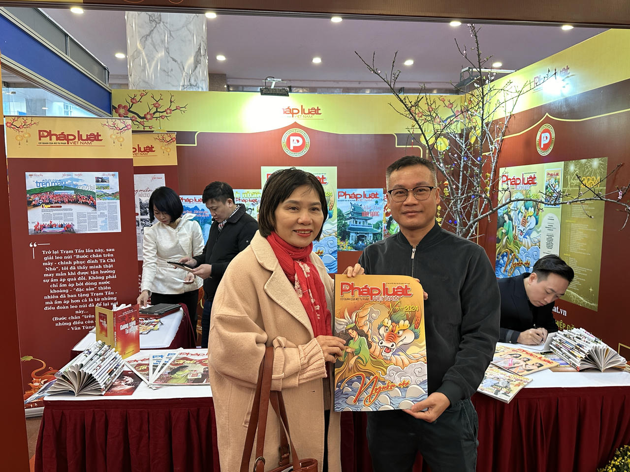 Tại Hội báo, Chủ tịch Hội nhà Báo Việt Nam Lê Quốc Minh và Chủ tịch Hội Nhà báo TP Hà Nội Tô Quang Phán ghé thăm gian trưng bày của Báo Pháp luật Việt Nam |