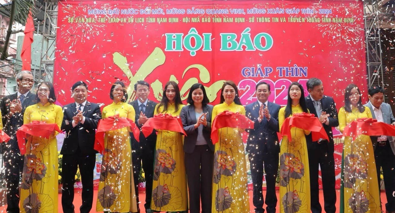 Các đại biểu cắt băng khai mạc hội Báo Xuân Giáp Thìn 2024 tỉnh Nam Định |