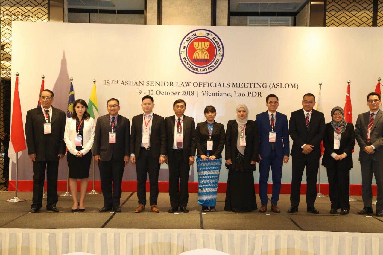 Hội nghị lần thứ 18 quan chức pháp luật cao cấp các nước ASEAN (ASLOM 18) đã được khai mạc ngày 9/10/2018 và sẽ diễn ra trong 2 ngày 09 và 10/10/2018 tại Viêng-chăn, Lào với sự tham dự của các đoàn đại biểu 10 nước thành viên ASEAN và đại diện Ban Thư ký ASEAN.