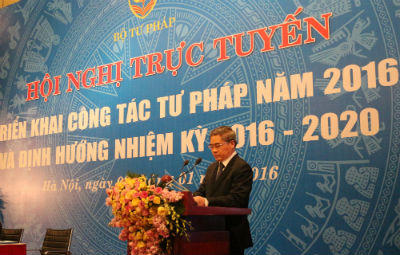 (PLO) - Sáng nay 8/1, Bộ Tư pháp đã tổ chức hội nghị trực tuyến triển khai công tác tư pháp năm 2016 và định hướng nhiệm kỳ 2016-2020.