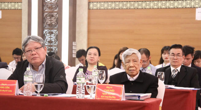 TS. Lê Thành Long - Ủy viên BCH Trung ương Đảng, Bộ trưởng Bộ Tư pháp và đồng chí Nguyễn Đình Xứng, Phó Bí thư Tỉnh ủy, Chủ tịch Ủy ban nhân dân tỉnh Thanh Hóa, TS. Phan Chí Hiếu – Thứ trưởng Bộ Tư pháp, Nhà sử học Dương Trung Quốc – Tổng thư ký Hội khoa học lịch sử Việt Nam, TS. Nguyễn Văn Cương, Q. Viện trưởng Viện Khoa học pháp lý đồng chủ trì Hội thảo.
