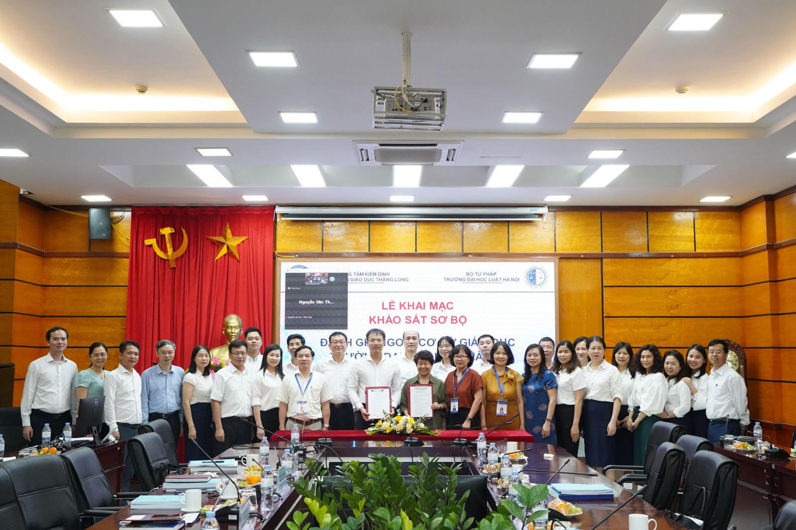 Tham dự đợt khảo sát sơ bộ có GS.TS Trần Văn Nam - Nguyên Giám đốc Đại học Đà Nẵng, Trưởng đoàn khảo sát; PGS.TS Đỗ Thị Thúy Hằng - Kiểm định viên, Trung tâm Kiểm định chất lượng giáo dục Thăng Long; PGS.TS Lê Thị Tuyết - Kiểm định viên, Trung tâm Kiểm định chất lượng giáo dục Thăng Long; TS Phan Anh Tuấn - Trưởng phòng Khảo thí và Đảm bảo chất lượng đào tạo, Học viện An ninh nhân dân; Bà Phí Thị Nguyệt Thanh - Phó Giám đốc Trung tâm Kiểm định chất lượng giáo dục Thăng Long. Về phía Trường Đại học Luật Hà Nội có TS Đoàn Trung Kiên - Hiệu trưởng Nhà trường, Các Phó Hiệu trưởng: PGS.TS. Vũ Thị Lan Anh, PGS.TS Tô Văn Hòa, các đồng chí Đảng ủy viên, thành viên Hội đồng Trường cùng các thành viên Hội đồng tự đánh giá, lãnh đạo các đơn vị và cá nhân liên quan trong Nhà trường.