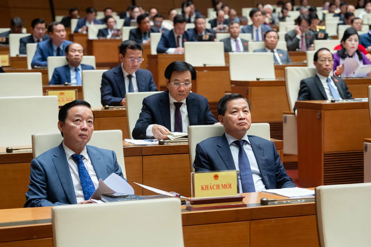 | Phó Thủ tướng Chính phủ Trần Hồng Hà và Phó Thủ tướng Chính phủ Lê Minh Khái tham dự Kỳ họp |