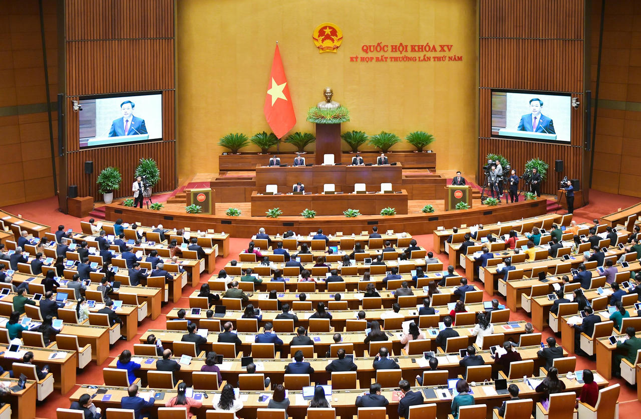 Phát biểu khai mạc Kỳ họp bất thường lần thứ 5, Chủ tịch Quốc hội Vương Đình Huệ nêu rõ, để đáp ứng yêu cầu cấp thiết của thực tiễn, căn cứ quy định của Hiến pháp và pháp luật, Ủy ban Thường vụ Quốc hội quyết định triệu tập Kỳ họp bất thường lần thứ 5, Quốc hội khóa XV để xem xét, quyết định những nội dung quan trọng sau: về dự án Luật Đất đai (sửa đổi); về dự án Luật Các tổ chức tín dụng (sửa đổi); về một số cơ chế, chính sách đặc thù đối với các Chương trình mục tiêu quốc gia, thực hiện Nghị quyết về giám sát chuyên đề tại Kỳ họp thứ 6; xem xét, cho ý kiến và quyết định một số nội dung quan trọng, cấp thiết về tài chính, ngân sách.