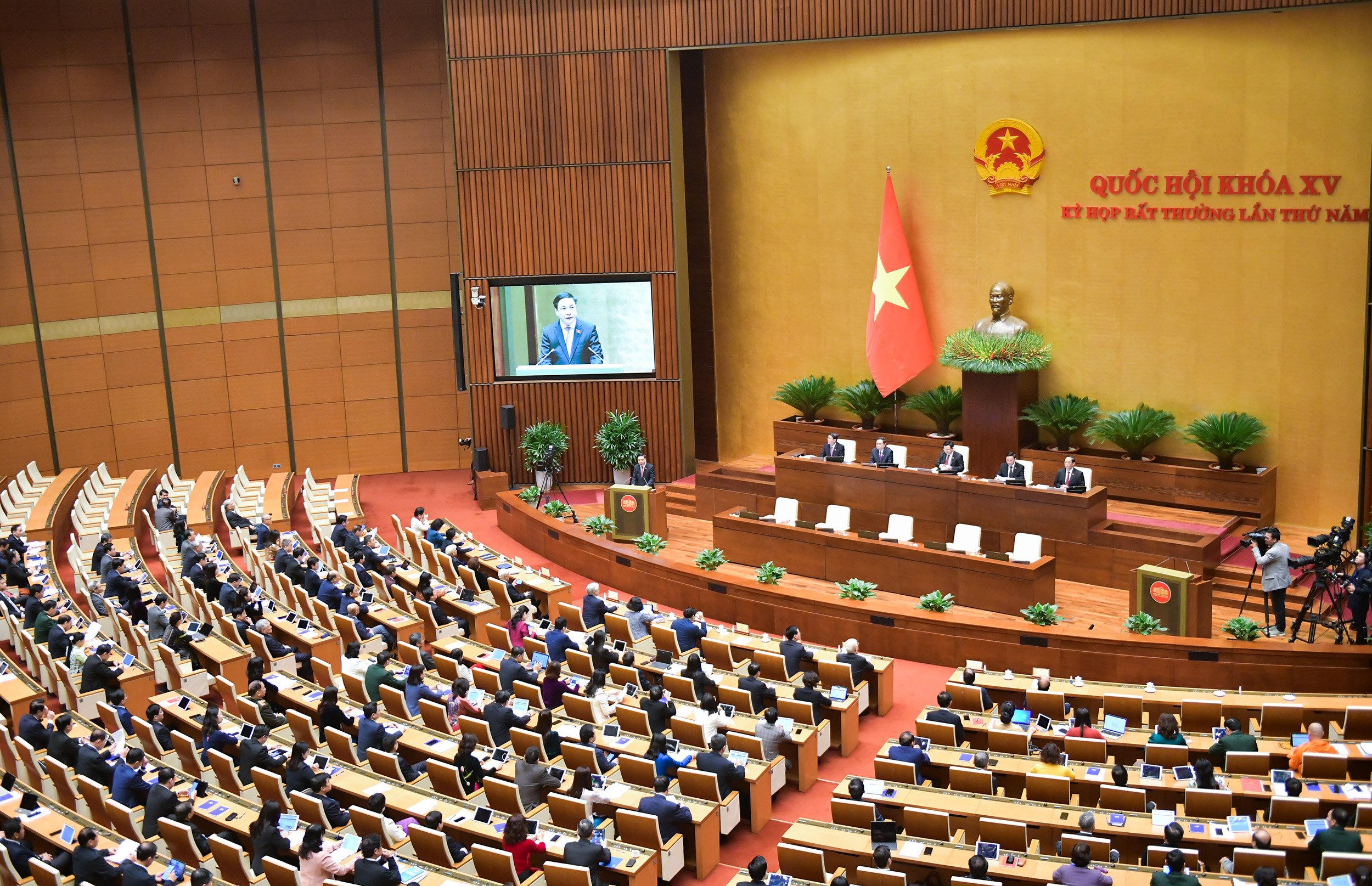 Tham dự và đưa tin về Kỳ bất thường lần thứ 5 có các phóng viên đại diện các cơ quan thông tấn, báo chí trong nước và quốc tế. Nhân dịp năm mới 2024 và chuẩn bị đón Tết cổ truyền của dân tộc, Tổng Thư ký Quốc hội, Chủ nhiệm Văn phòng Quốc hội Bùi Văn Cường kính chúc các đồng chí lãnh đạo, nguyên lãnh đạo Đảng, Nhà nước, Mặt trận Tổ quốc Việt Nam, các vị đại biểu khách quý, các vị đại biểu Quốc hội và đồng bào cử tri cả nước dồi dào sức khỏe, hạnh phúc và thành công, chúc Kỳ họp bất thường lần thứ 5 họp Quốc hội khóa XV thành công tốt đẹp.