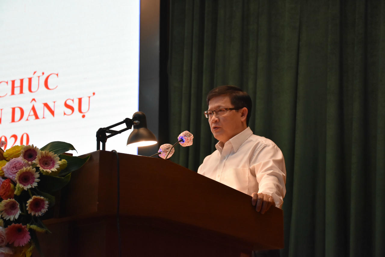 Phát biểu khạc, Thứ trưởng Mai Lương Khôi cho biết căn cứ vào yêu cầu, vị trí việc làm, cơ cấu công chức của các cơ qaun THADS và để đánh giá, xác định công chức THADS đủ điều kiện, xứng đáng bổ nhiệm vào ngạch công chức cao hơn, Bộ Tư pháp đã xây dựng Đề án tổ chức thi nâng ngạch chấp hành viên cao cấp, ngạch chấp hành viên trung cấp, ngạch thẩm tra viên cao cấp, ngạch thẩm tra viên chính, ngạch kế toán viên, ngạch thư ký thi hành án, ngạch chuyên viên năm 2020 dành cho công chức ngành THADS. Đề án thi nâng ngạch công chức hệ thống THADS năm 2020 đã được Bộ Nội vụ thống nhất và Bộ trưởng Bộ Tư pháp quyết định phê duyệt danh sách công chức đủ điều kiện dự thi với số ngạch dự thi là 7 ngạch như trên.
