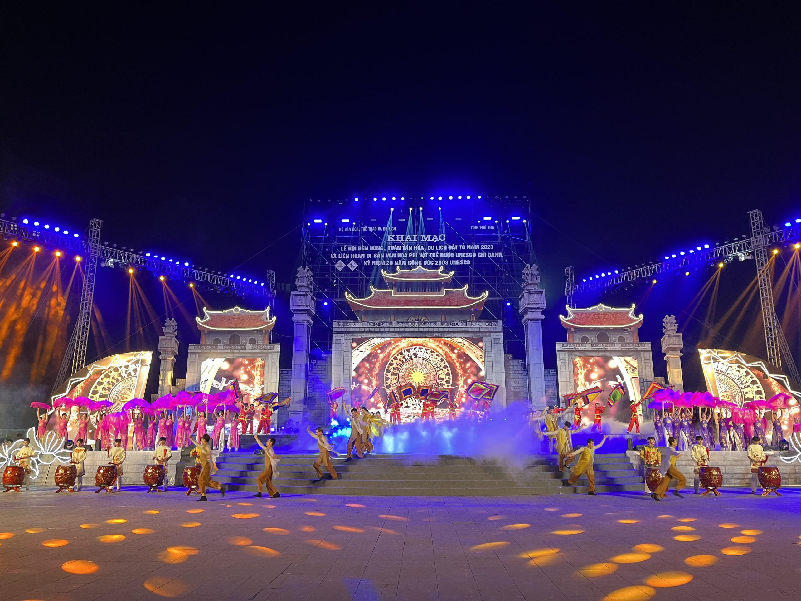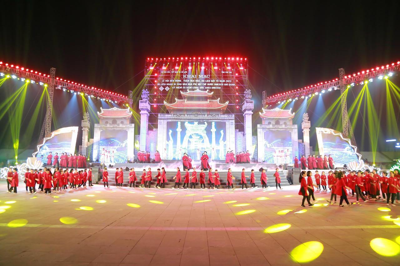 (PLVN) - Tối ngày 21/4, tại Quảng trường Hùng Vương, thành phố Việt Trì, tỉnh Phú Thọ đã diễn ra Lễ khai mạc Lễ Giỗ Tổ Hùng Vương và Tuần Văn hóa - Du lịch Đất Tổ năm 2023, Lễ kỷ niệm 20 năm thực hiện Công ước của UNESCO về bảo vệ di sản văn hoá phi vật thể.