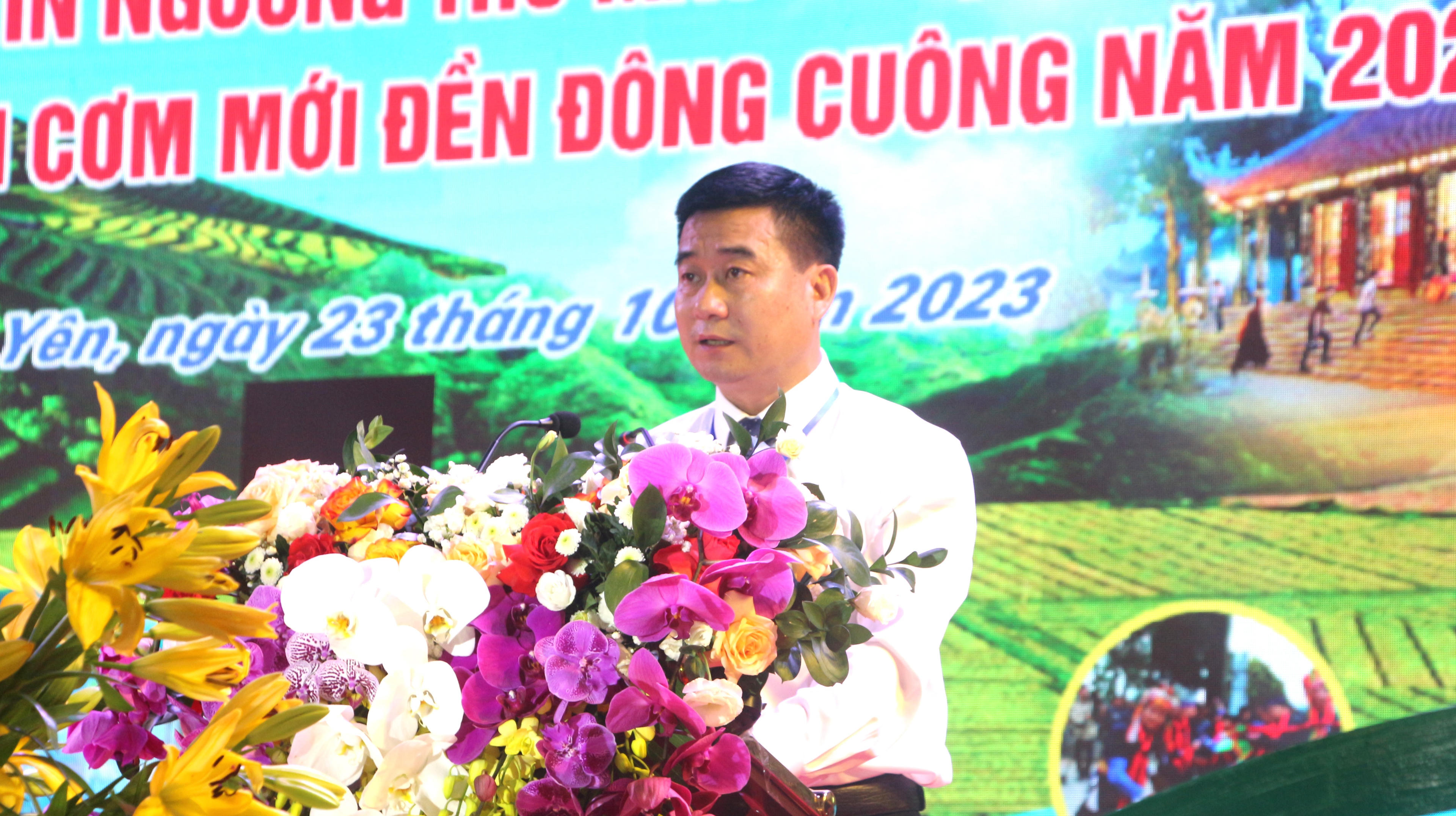 Chủ tịch UBND huyện Văn Yên - Yên Bái phát biểu khai mạc. Ảnh: Nhật Nguyên. |