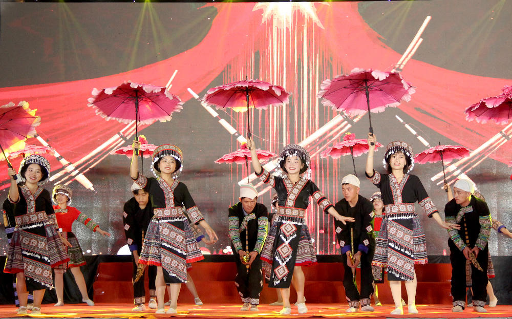Chương trình nghệ thuật tại Lễ khai mạc đem đến những nét đặc trưng của người Mông ở Mù Cang Chải. Ảnh: Bùi Minh |
