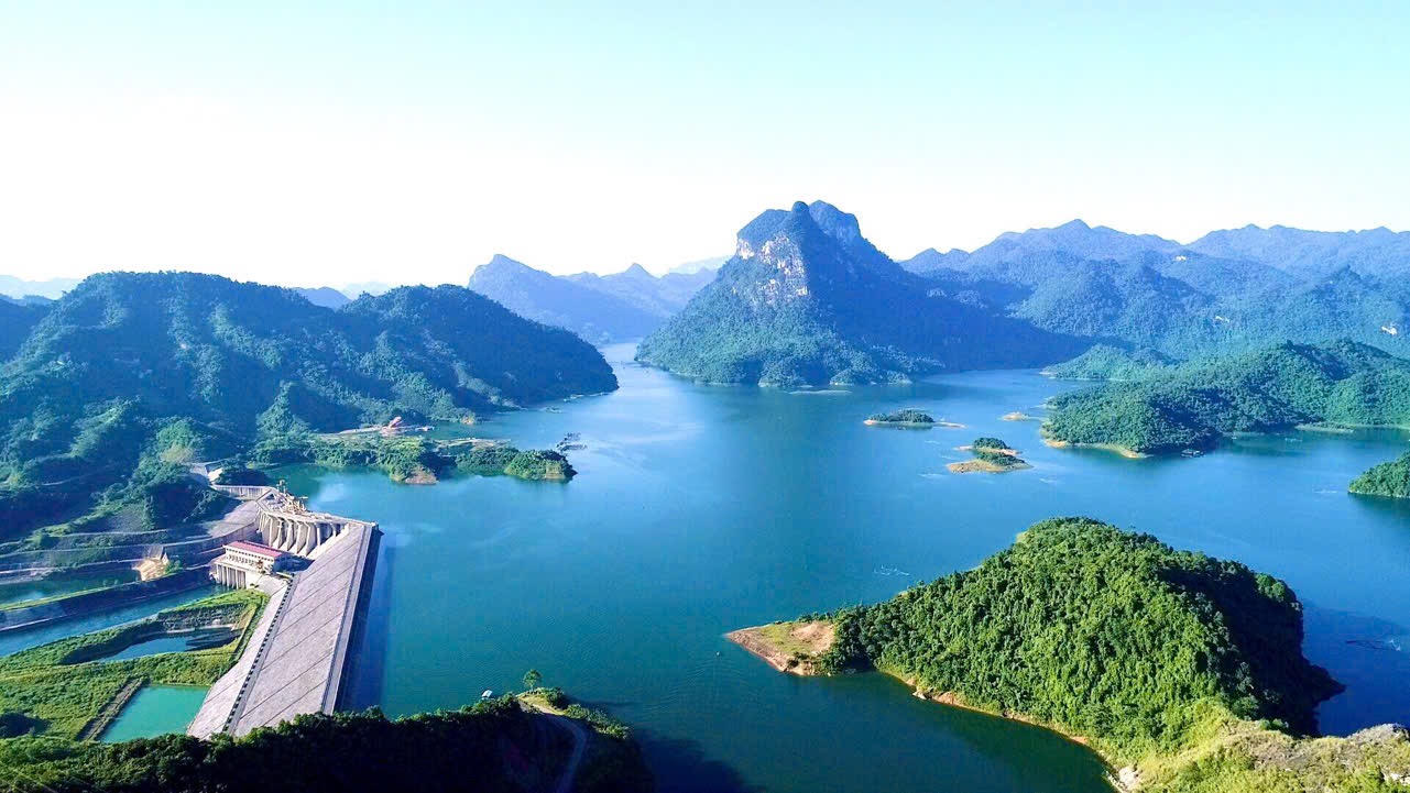 Hồ Thuỷ điện Na Hang nhìn từ trên cao đẹp như một bức tranh thuỷ mặc |
