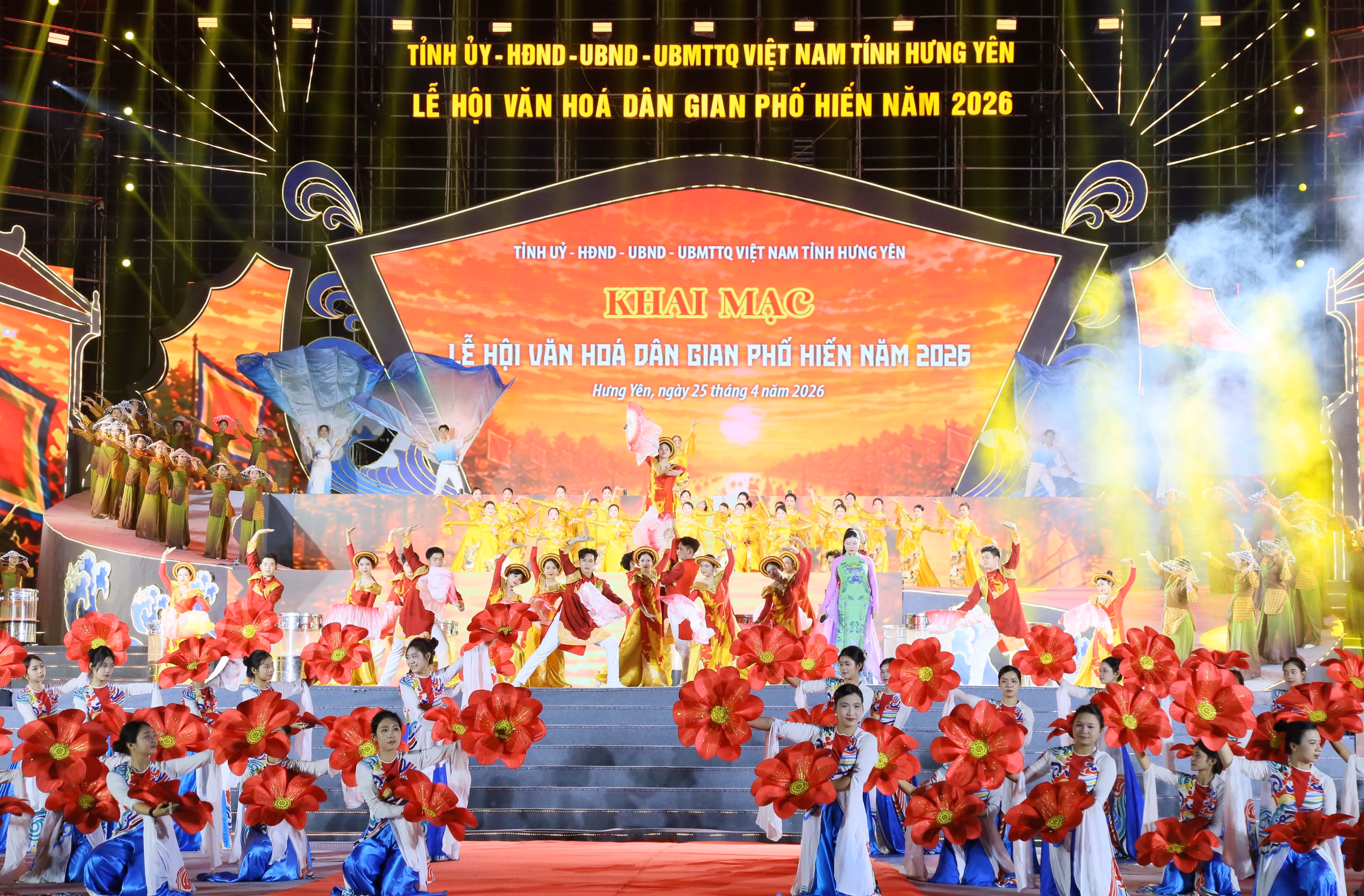 (PLVN) - Tối 25/4 (tức 9/3 năm Bính Ngọ), tại Quảng trường Nguyễn Văn Linh, tỉnh Hưng Yên trang trọng khai mạc Lễ hội Văn hóa dân gian Phố Hiến 2026 - sự kiện mở đầu chuỗi hoạt động tôn vinh, lan tỏa giá trị di sản của vùng đất Phố Hiến.