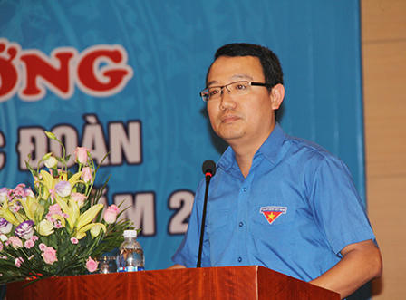 | Đồng chí Hồ Quang Huy - Ủy viên BCH Đoàn khối các cơ quan Trung ương, Bí thư Đoàn thanh niên Bộ Tư pháp phát biểu khai mạc lớp bồi dưỡng |