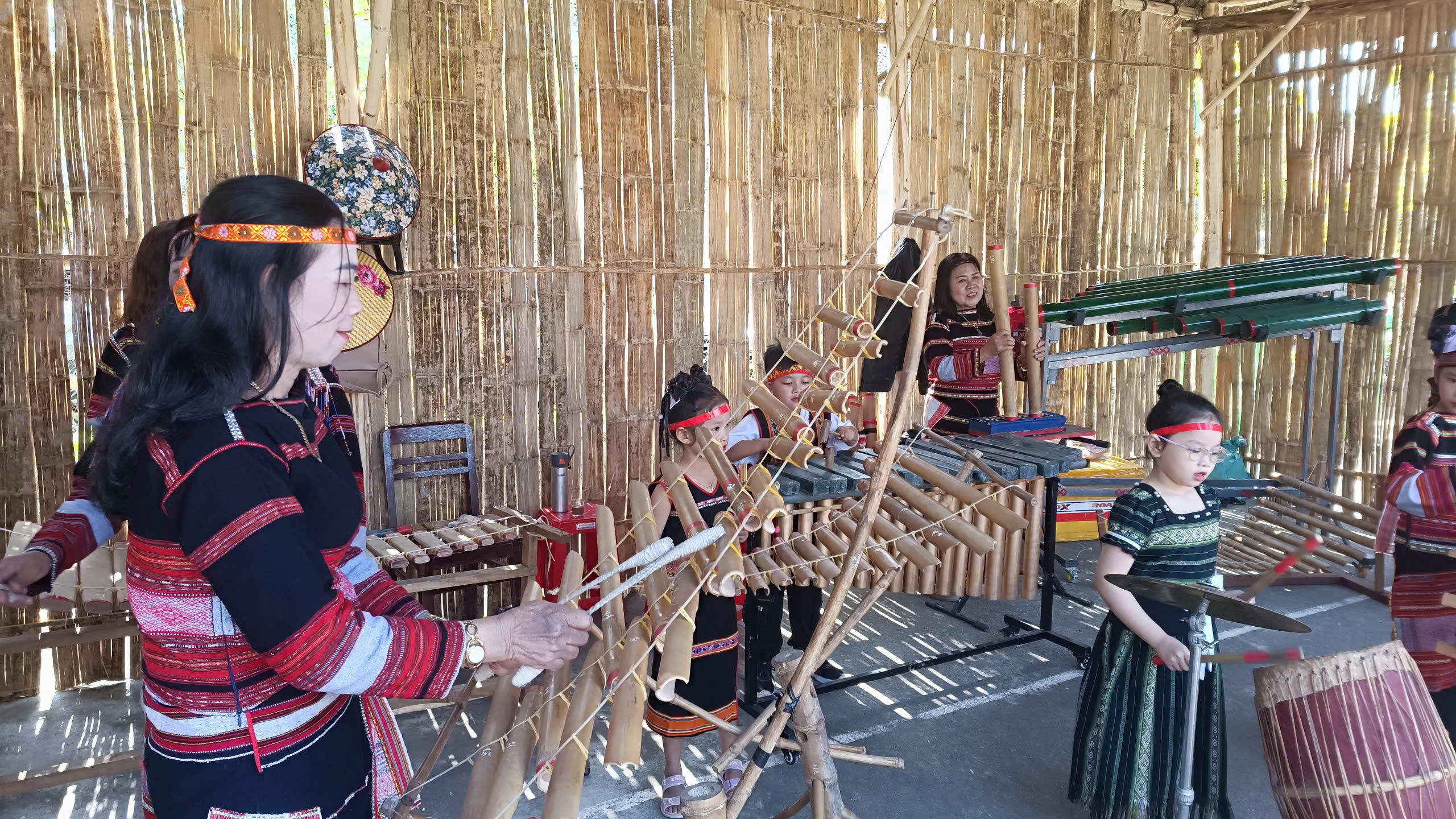Bên cạnh đó, khu vực triển lãm hiện vật truyền thống và gian hàng ẩm thực thu hút đông đảo khách tham quan. Các món ăn dân dã, đặc sản của địa phương như gà nướng cơm lam, bánh ít lá gai, rượu cần được giới thiệu đến du khách, mang lại những trải nghiệm ẩm thực độc đáo và khó quên.