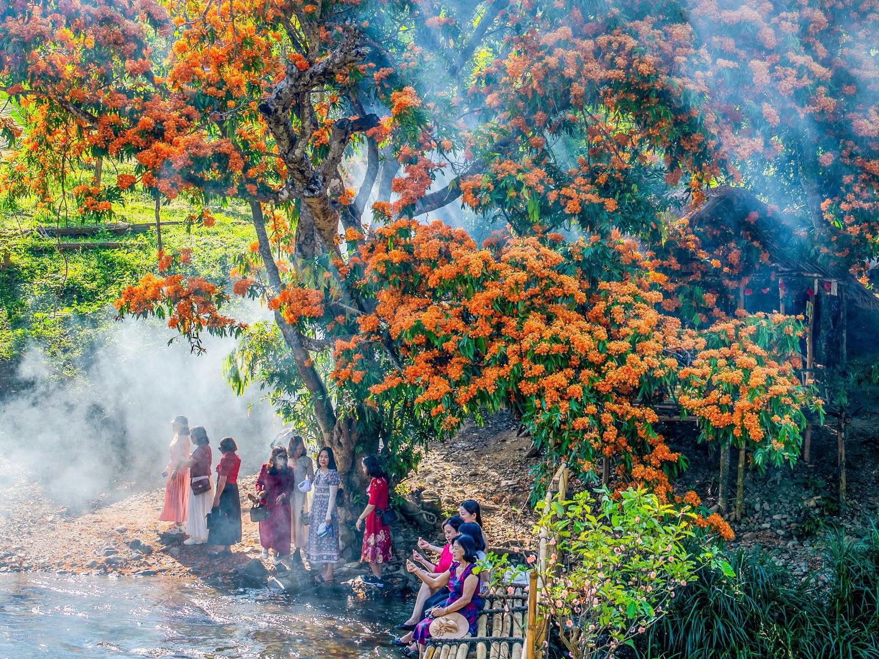 Du khách ngắm hoa trang tại suối Tà Má |