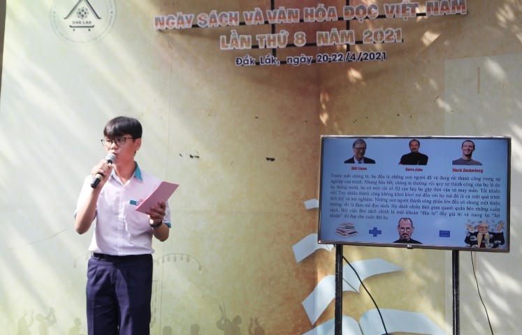 Tại lễ khai mạc, ông Nguyễn Ngọc Tý, Phó Giám đốc Sở Thông tin & Truyền thông tỉnh Đắk Lắk mong mọi người dân sinh sống trên địa bàn tỉnh hưởng ứng mạnh mẽ "Ngày Sách và Văn hóa đọc" Việt Nam (21/4) hàng năm bằng các hành động cụ thể, thiết thực như: Mỗi ngày đọc 1 trang sách, mỗi tuần đọc 1 cuốn sách; Tôn vinh việc xây dựng các Tủ sách gia đình, dòng họ, những tấm gương tiêu biểu về lòng say mê đọc sách; Tổ chức quyên góp sách ủng hộ cho đồng bào vùng sâu, vùng xa, vùng khó khăn. Mỗi người hãy nâng cao nhận thức, trách nhiệm trong phong trào đọc sách, hướng tới xây dựng một xã hội học tập và học tập suốt đời, để làm giàu thêm kiến thức của mình góp phần ngăn chặn và đẩy lùi sự xuống cấp về văn hóa, đạo đức xã hội. Chung tay xây dựng một môi trường văn hóa tinh thần lành mạnh, nhân văn./.