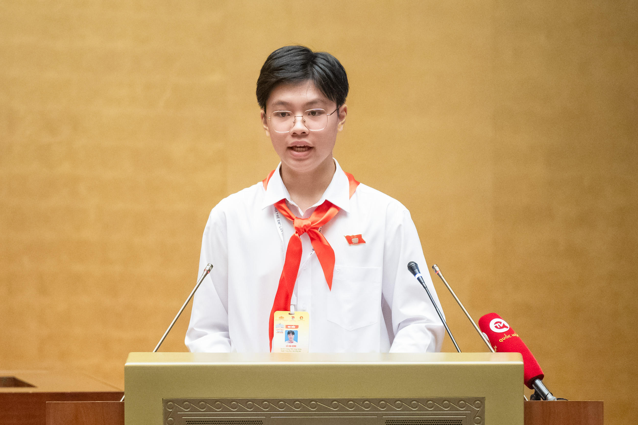“Trong thời gian ngắn, “Quốc hội trẻ em” sẽ xem xét nhiều nội dung quan trọng với khối lượng công việc của phiên họp “Quốc hội trẻ em” lần thứ hai là tương đối lớn. Để phiên họp đạt kết quả tốt nhất, thay mặt Ủy ban Thường vụ “Quốc hội trẻ em”, tôi trân trọng đề nghị các vị đại biểu phát huy dân chủ, đoàn kết, nêu cao tinh thần trách nhiệm, tập trung nghiên cứu kỹ lưỡng, thảo luận sôi nổi, đóng góp nhiều ý kiến tâm huyết, sâu sắc, chất lượng để đáp ứng yêu cầu, nhiệm vụ trong công tác bảo vệ, chăm sóc, giáo dục trẻ em cũng như sự mong đợi của “cử tri trẻ em” và Nhân dân cả nước”, Chủ tịch “Quốc hội trẻ em” Lê Gia Vinh chia sẻ.