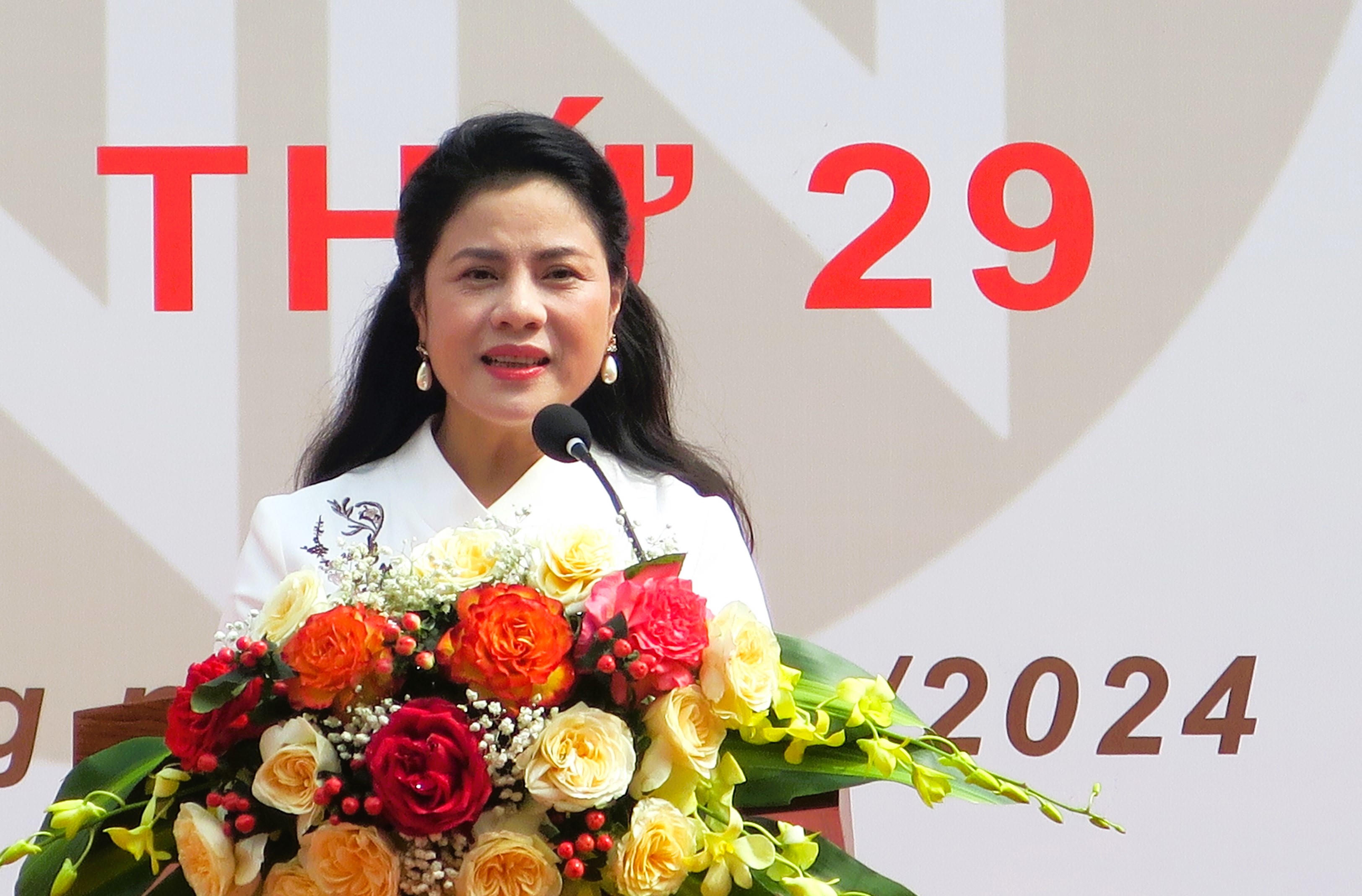 Bà Trần Thị Hoàng Mai, Giám đốc Sở Văn hóa và Thể thao Hải Phòng phát biểu tại Lễ khai mạc. |