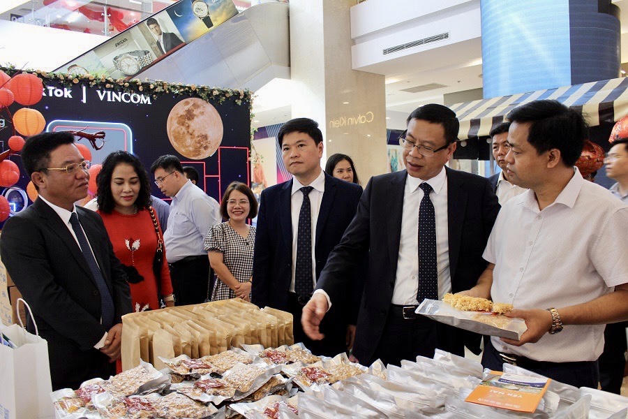 | Các đại biểu tham quan các gian hàng trưng bày sản phẩm. |
