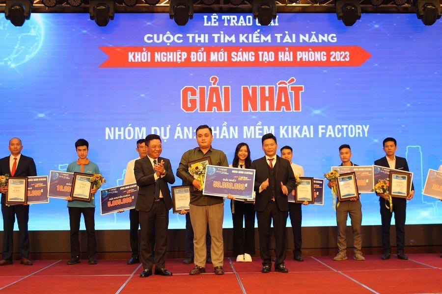 Trong khuôn khổ Techfest Hải Phòng 2023, Ban Tổ chức trao 1 giải Nhất cho Dự án phần mềm Kikai Factory và 2 giải Nhì, 3 giải Ba, 4 giải khuyến khích cho các dự án khác tham gia cuộc thi “Tìm kiếm tài năng khởi nghiệp đổi mới sáng tạo Hải Phòng 2023".