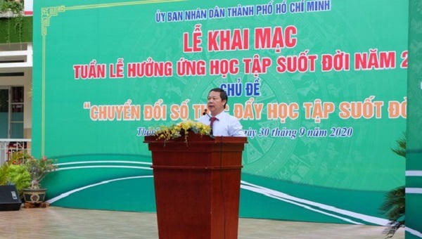 (PLVN) - Sáng 30/9, tại Trường THCS Lương Định Của (quận 2), UBND TPHCM đã tổ chức lễ khai mạc Tuần lễ hưởng ứng học tập suốt đời năm 2020 với chủ đề "Chuyển đổi số thúc đẩy học tập suốt đời".