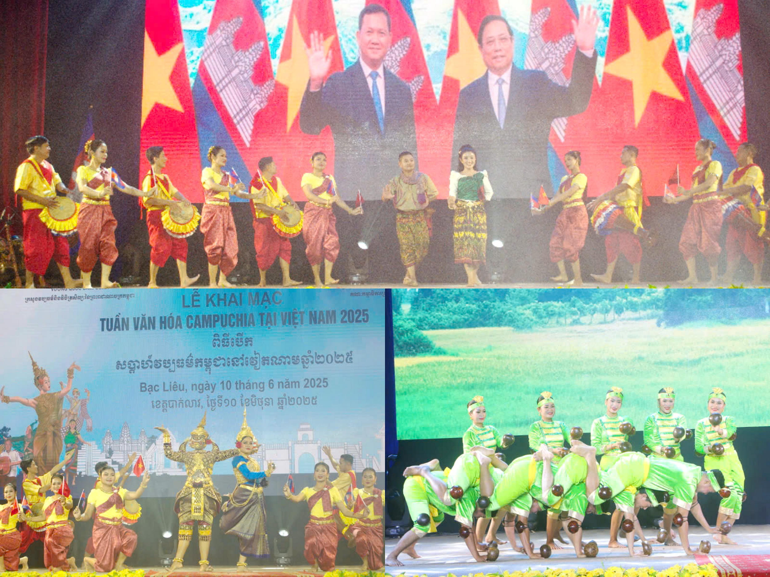 (PLVN) - Tối 10/6, tại Bạc Liêu, Bộ Văn hóa, Thể thao và Du lịch Việt Nam, Bộ Văn hóa và Nghệ thuật Vương quốc Campuchia phối hợp cùng UBND tỉnh Bạc Liêu long trọng tổ chức khai mạc “Tuần Văn hóa Campuchia” tại Việt Nam năm 2025, nhằm tăng cường quan hệ văn hóa, đối ngoại và du lịch giữa Việt Nam và Campuchia.